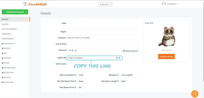 Note – Copy the AMQP URL and save it somewhere, we will need it later in the tutorial.